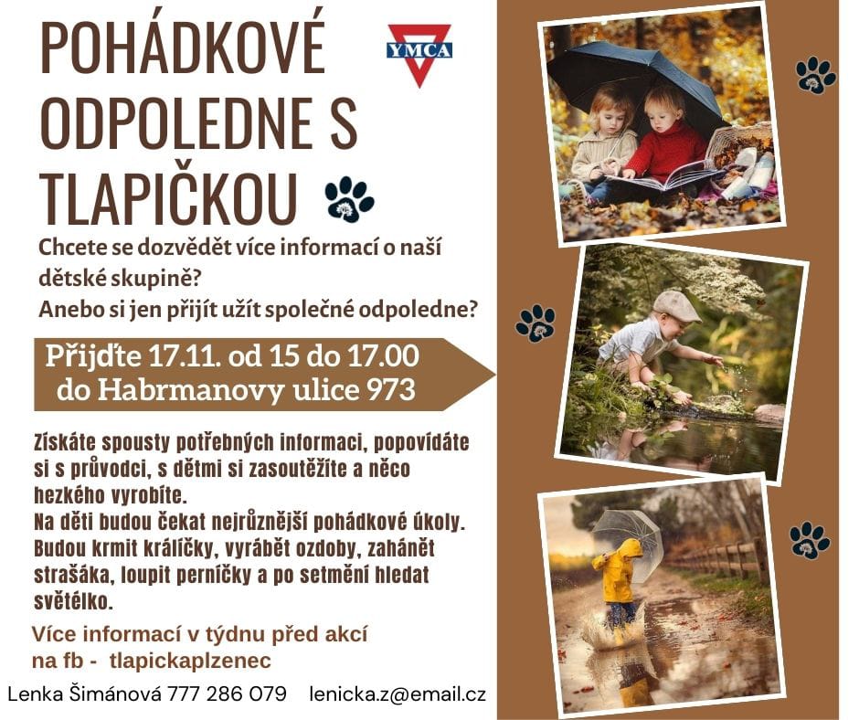Ve Starém Plzenci bude od 1. 1. 2025 v provozu dětská lesní skupina Tlapička. O dětské skupině můžete získat více informací 17. 11. 2024 od 15 do 17 hod v Habrmanově ul. 973 ve Starém Plzenci.